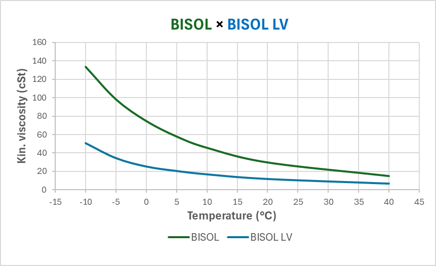 BISOL LV has lower viscosity, which allows for easier spraying, better penetration on complex surfaces, and reduced aerosol formation. Standard BISOL has higher viscosity and may be preferred for applications where a thicker film is needed.